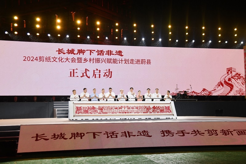 8月10日晚,“长城脚下话非遗——2024剪纸文化大会暨乡村振兴赋能计划走进蔚县”系列活动在张家口市蔚县举办。在倒计时声中,嘉宾与现场观众共同启动了本次活动。