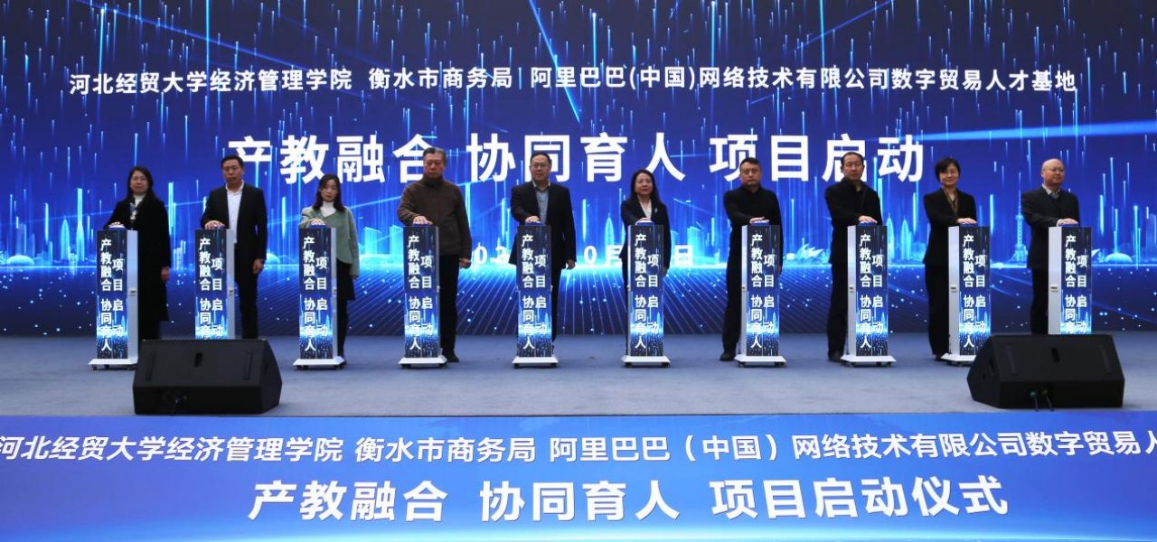 10月29日,由河北经贸大学经济管理学院、衡水市商务局与阿里巴巴(中国)网络技术有限公司数字贸易人才基地联合主办的“产教融合 协同育人”项目在河北经贸大学经济管理学院启动。三方将在数字贸易人才培养领域开启深度合作,共同推动教育链、人才链、产业链与创新链的深度融合。