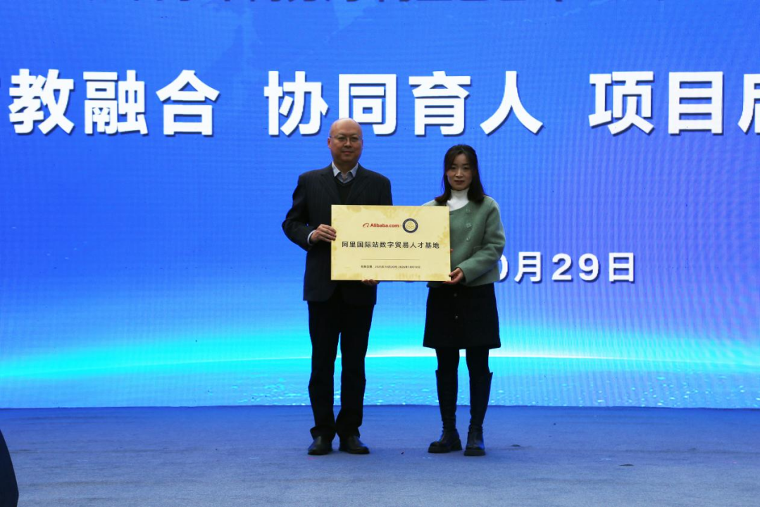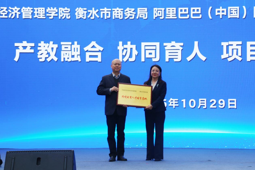 项目启动仪式上,衡水市商务局代表为河北经贸大学经济管理学院跨境电商人才培育基地授牌;阿里巴巴(中国)网络技术有限公司数字贸易人才基地与学院签约,并授予学院“阿里国际站数字贸易人才基地”牌匾。