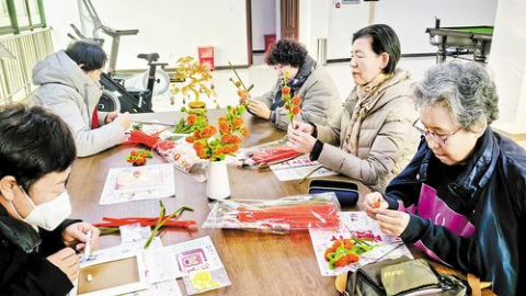 12月10日,退休人员在秦皇岛市山海关区国有企业退休人员社会化服务中心活动室做手工。 宋柏松 摄