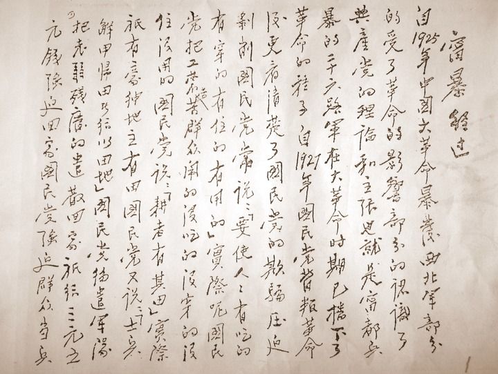 董振堂事迹陈列馆内,一份泛黄的《宁暴经过》手稿尤为珍贵,董振堂亲笔写下:“看清楚了国民党欺骗、压迫、剥削,认清楚了唯有共产党终能为工农劳苦群众谋解放到底。”字里行间,是他从迷茫到觉醒、从彷徨到坚定的信仰转变。
