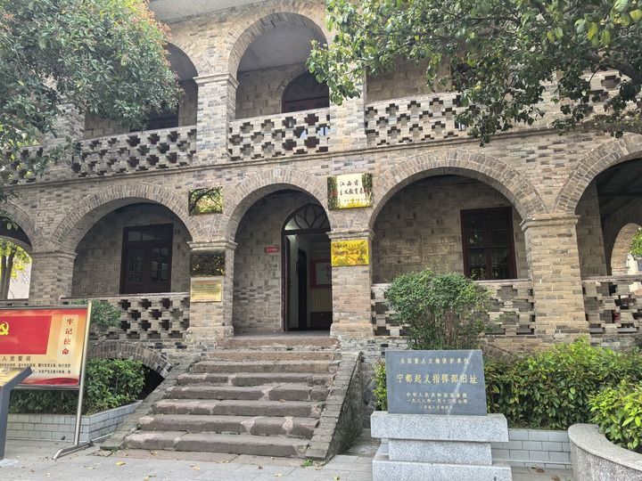 梅江河畔,一座两层砖木结构的西欧罗马式建筑的墙壁上,书写着一条条醒目的红色标语。走进宁都起义指挥部旧址,迎面便是毛泽东同志题词:“以宁都起义的精神用于反对日本帝国主义,我们是战无不胜的。”