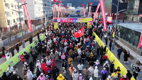 1月1日,在河北省承德市围场满族蒙古族自治县,2026年承德围场“德德食品杯”亚高原迎新健康跑活力开跑,2000余名参赛选手用奔跑的姿态迎接新年的到来。
