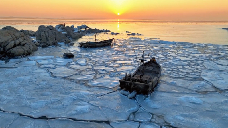 冬日限定!河北秦皇岛冰海日出如梦如幻
