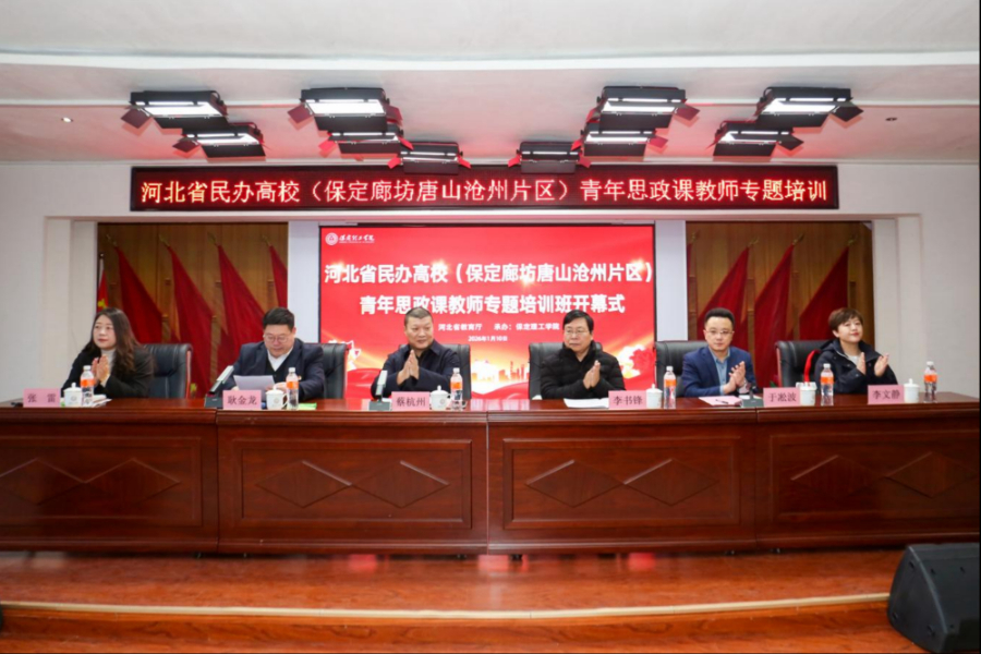 1月10日,由河北省教育厅主办、保定理工学院承办的河北省民办高校(保定、廊坊、唐山、沧州片区)青年思政课教师专题培训班在保定理工学院开班。来自河北省内10所民办高校(含独立学院)的200余名青年教师齐聚一堂,共话思政课教学建设与发展。