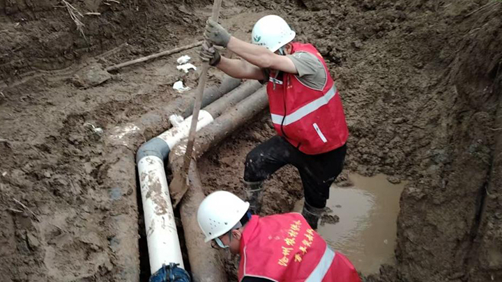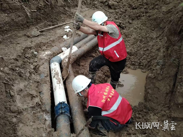党员突击队在维修管道。通讯员王昆睿 摄