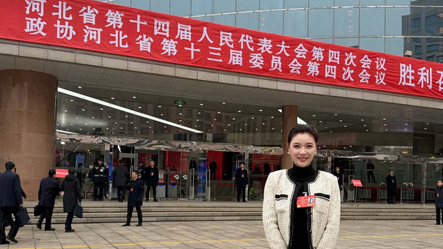 河北省人大代表、石家庄食草堂文化饰品有限公司总经理牛睿仪。新华网发