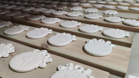 2024年9月,朱治铭和团队第一次接到订单,要完成11000枚奖牌的设计和制作任务。这对他们来说是一项新的挑战:设计方案几易其稿,历时两个月才最终确定;生产流程包括制泥、成形、修坯、施釉等36道工序,制作周期长达两周。
