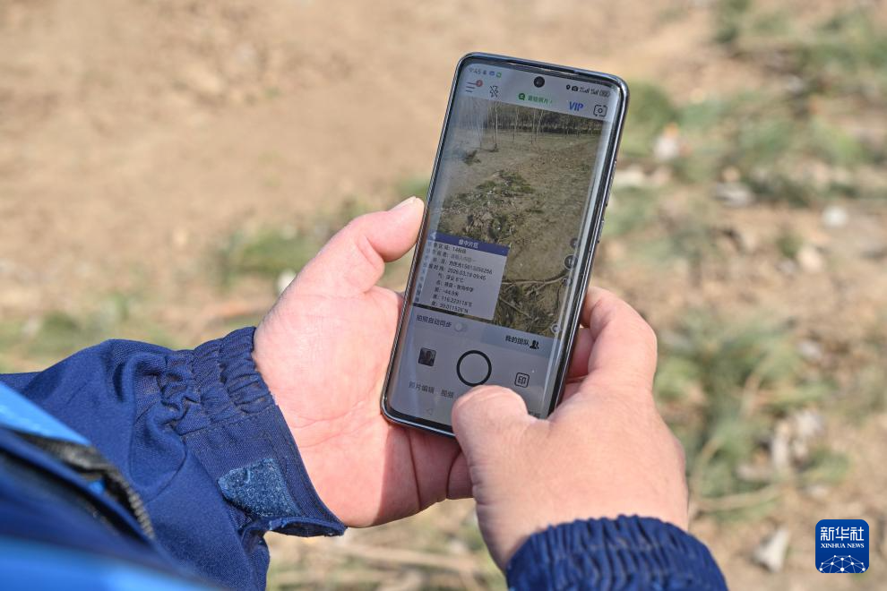 3月19日,刘世光在雄安新区“千年秀林”雄中片区的树林里拍摄巡检现场。
