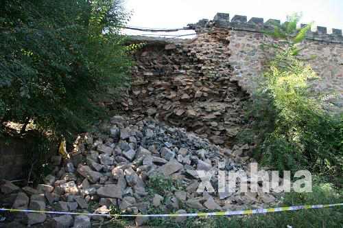 连续降雨侵蚀致承德避暑山庄宫墙小部分坍塌