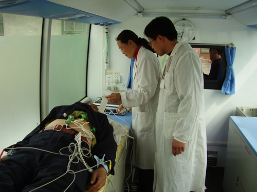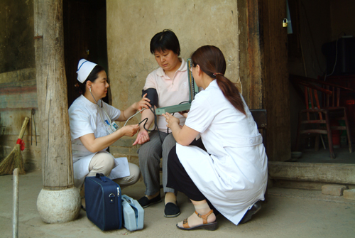 进村入户为当地病人进行检查